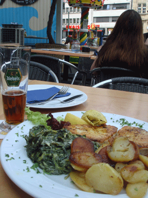 ドイツ語での説法は、全く理解できませんが、賛美歌のときには、前方電光表示板に歌う番号が出るので、番号のページを開き音符になぞって、なんとなくアルファベット読み。近くに、大きな声で歌うおじいさんがいたので、ちょっとしたドイツ語のリスニングレッスンです。