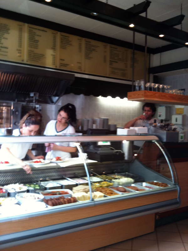 ギリシャ料理のピタサンドとアップルショーレ(炭酸のリンゴジュース)を頼んで6€。