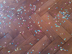 床に散らばった紙吹雪。
