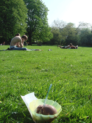 しかし、今日は公園から通りをはさんだ手前の通り上にあるEiscafeアイスクリームカフェで、ほかの多くの人がしているように、アイスクリームを買って公園へ入りました。
