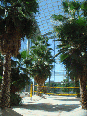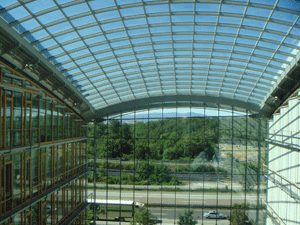 建物の全周と屋根はガラス張りで、夏はいかにも暑そうに見えますが、高性能なダブルスキン、ブラインド、自然換気、通風ができるシステムを導入することで、過剰な冷暖房を控えて、26℃前後の室内温度を保つことができているのです。