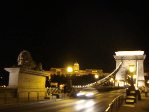 体が暖まりすっかり元気になったところで夕食にでかける際通った、ブダとペストの2つの町を初めて結んだ、くさり橋と王宮の夜景です。
