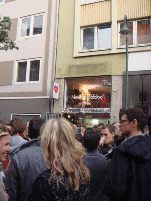 人だかりができている通りの入り口、ちょうどベートーベン通りのカフェ;ベートーベンの前にはDJブースが出ていて、大音量はここからでした。